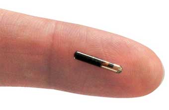 Dans notre clinique, nous utilisons des micro-puces, d'une taille inférieure à celle d'un grain de riz (8mm sur 1,4mm). Elles sont constituées d'une enveloppe de cristal bio-polymère et d'un matériel électronique. L'enveloppe est étudiée pour limiter toute migration au sein de l'organisme.
